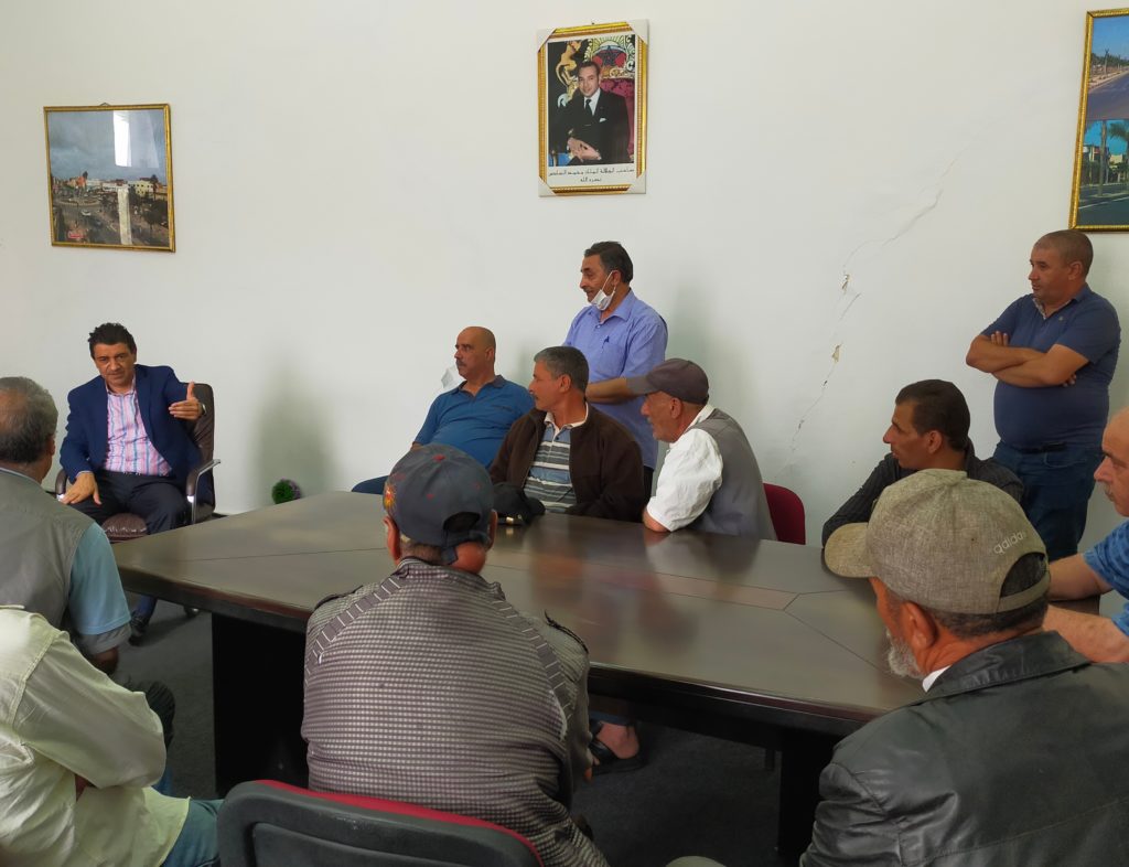 في بداية كلمته،رحب رئيس المجلس بساكنة ” سهب الحرشة”،مذكرا بآخر اتفاق جمعه بالساكنة،والمتعلق باستفادة أصحاب البراريك من بقع مجهزة من قبل شركة العمران،دون أن يدفعوا ولو درهم واحد،ايمانا منه بدوره كرئيس المجلس وممثل الساكنة في التخفيف عن الأسر المعوزة،والمساهمة في حل والقضاء على دور الصفيح تنزيلا للتعليمات الملكية السامية.