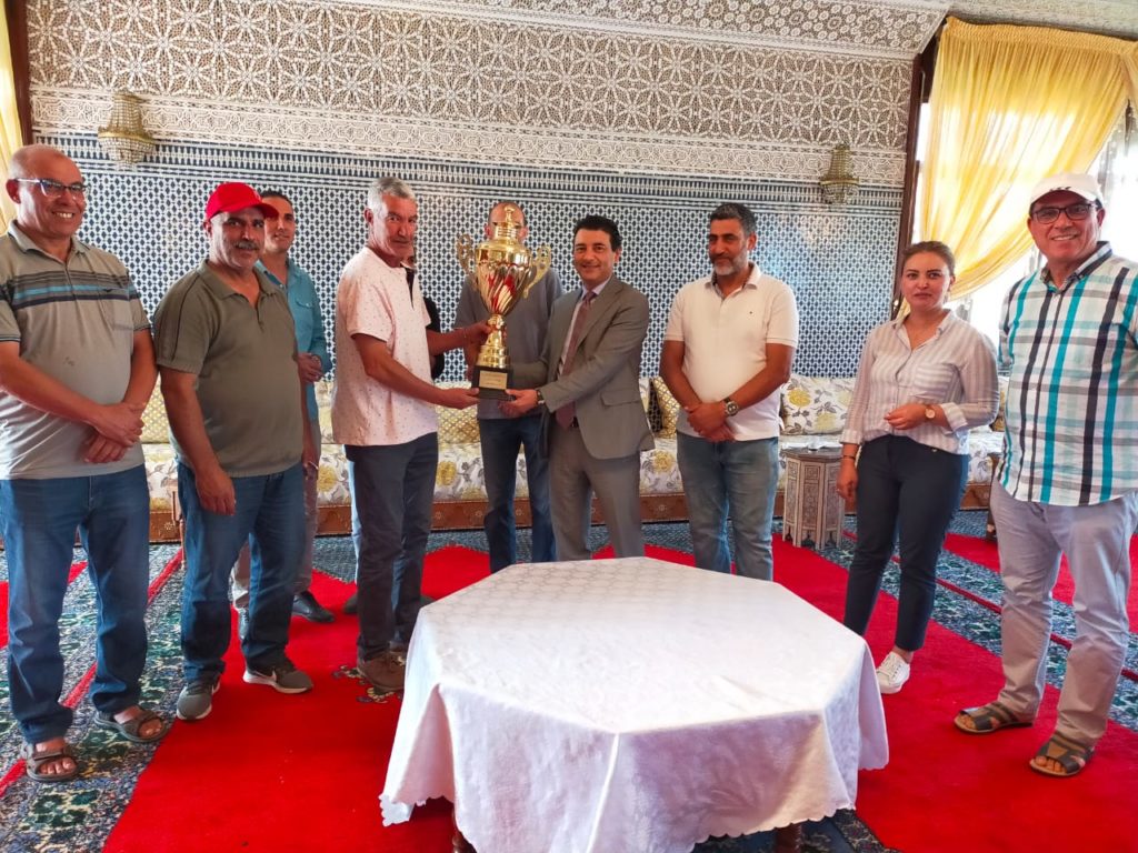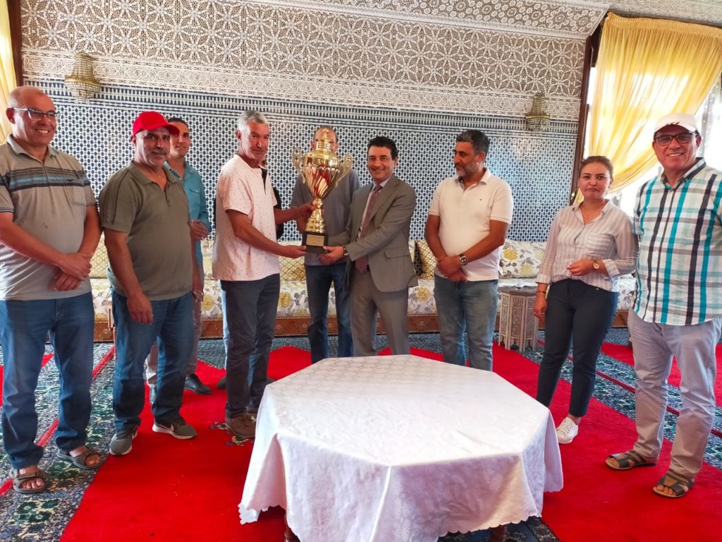 وسلم كأس البطولة لرئيس النادي الثلاثي الفائز رشيد حبشي،خالد بنار،والبطل العالمي عبد الصمد المنقار،الذي تسلم أيضا منحة عبارة عن مبلغ مالي من رئيس النادي.