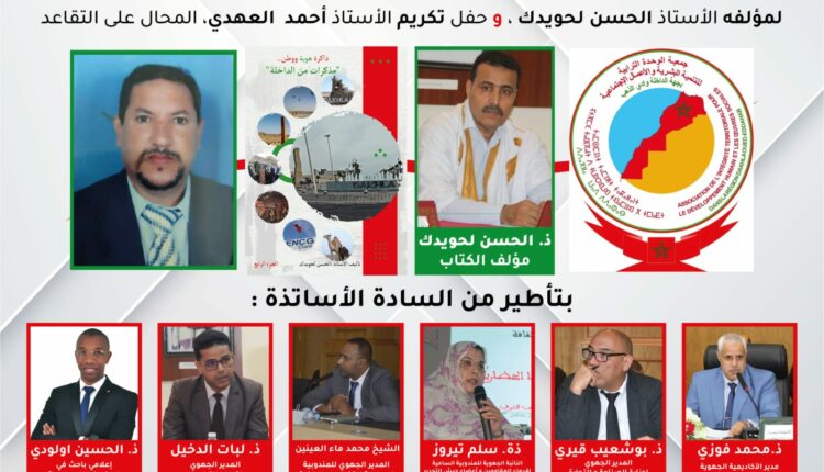 جمعية الوحدة الترابية بجهة الداخلة وادي الذهب تنظم حفل تقديم وتوقيع الجزء الرابع لكتاب ” ذاكرة هوية ووطن.. مذكرات من الداخلة ” ، وحفل تكريم الأستاذ أحمد العهدي المحال على التقاعد